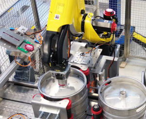 El robot puede trabajar hasta 1.400 barriles por hora, regulando la fuerza y la altura de capsulado, por lo que representa una solución diseñada para líneas de barriles de alta velocidad.